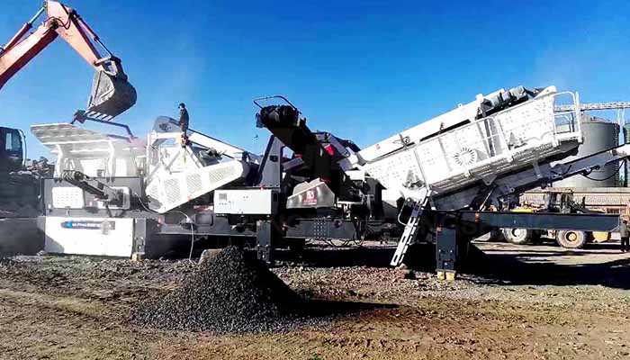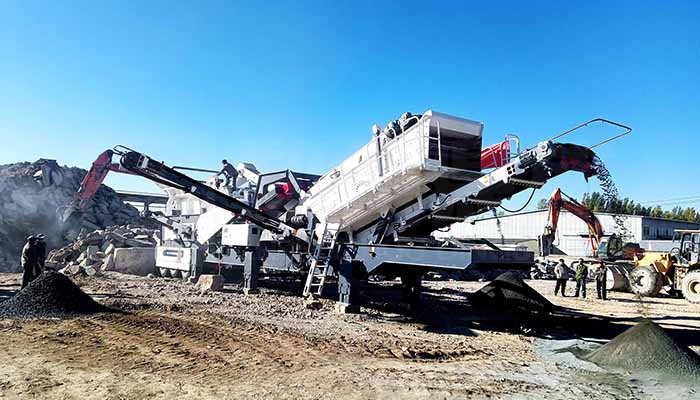 輪胎式(shì)移動破碎篩分一體車在廊坊資源化項目現場
