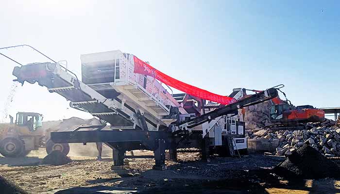 輪胎式移動破碎篩分一體車在廊坊資源化項目現場(chǎng)