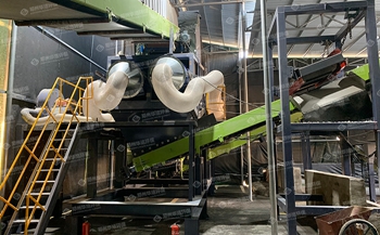 2、混合(hé)料經過輸送(sòng)機輸送至複合階梯(tī)篩,複合(hé)階梯篩上層為指形棒條,按階梯排布,不(bú)易堵塞,上(shàng)層篩分出混合料中的大粒徑物料,≤50mm以下(xià)物料進入二層篩網,二層篩網(wǎng)為聚氨酯篩(shāi)網,具有(yǒu)弛張收縮能力,不會堵塞網(wǎng)孔,≤15mm渣土及細骨料(liào)通過篩(shāi)離,通(tōng)過成品輸送機輸送至(zhì)成品料庫,>15mm以上物料隨(suí)上層篩分出的大粒(lì)徑物料混合進入下一級輕重分離模塊;在此單元中,設定有氣(qì)箱(xiāng)脈衝袋式除塵器,對粉塵進行收集,保證複合階梯篩篩(shāi)分(fèn)中工況條件。