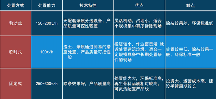 多種建築固廢處置模式(shì)的形成,有利(lì)於根(gēn)據不同條件下選擇合適的處置方式,靈活多變,適應各種時產,而且(qiě)多種(zhǒng)處置模式可以項(xiàng)目搭配,合理(lǐ)布(bù)局,形成固定式+移動(dòng)式的1+1組(zǔ)合模式或者固定式+多條臨時式的1+N的布局,這都有助於一個區域甚至一個城市建築固廢處置的整體規劃(huá)。