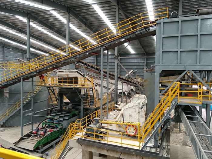 設備配置:JC顎式破碎機、AF反擊式破碎機、“亞飛”輕物質分離器(qì)、YK建築垃圾專用圓振動篩、XS洗砂處理係統(tǒng)等。