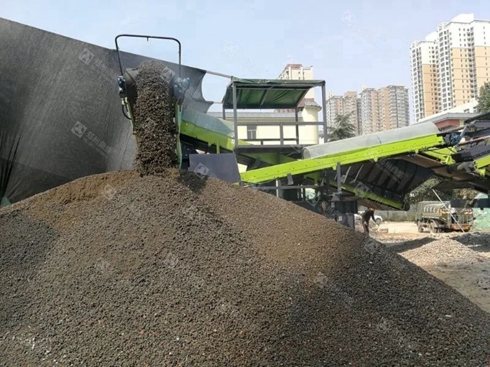 初級篩分(fèn)機主要作用是將原料中(zhōng)的細料分離出來,為下道工序中的人工分揀(jiǎn)做(zuò)準備,讓適(shì)量粒(lì)徑的材料進入人工分揀工段。由於這部(bù)分成品料(liào)中含雜(zá)物相對較少,篩分出來的成品料既可以(yǐ)直接用作回填材料,也可以進一步篩分進行分級,還可以再次進入破碎機,破碎後使用。