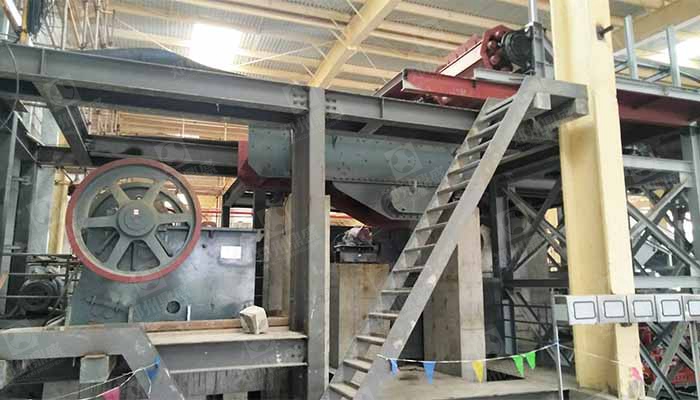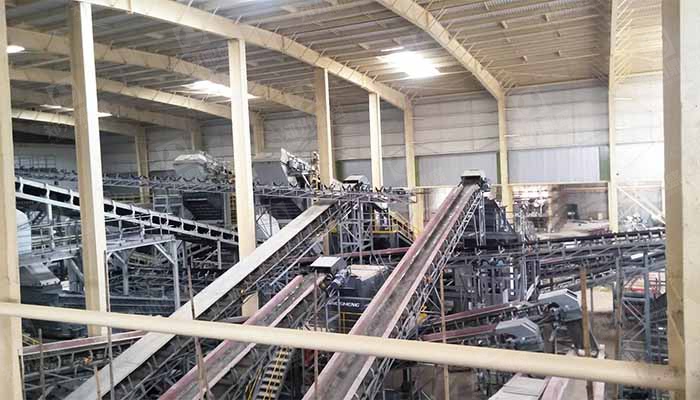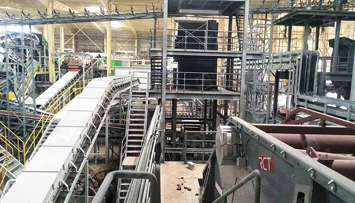 設備配置:棒條(tiáo)篩、雙齒輥破(pò)碎、振(zhèn)動篩、磁選、風(fēng)選、光選、反擊破碎、磁選、振動篩、渦流(liú)分選