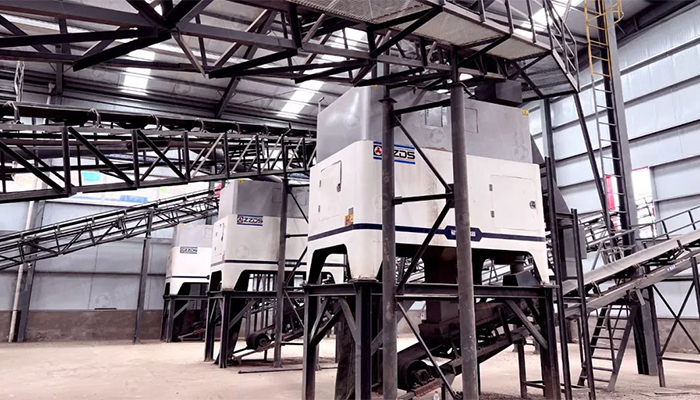 設備(bèi)配置(zhì):ZSW振(zhèn)動篩分給(gěi)料機、JC歐版顎式破碎機、AF歐版反擊式破碎機、YKF圓振動篩、“亞飛”輕物質分離器、GZG、振動卸料機等