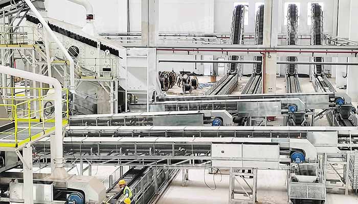 人工分選倉:工作人員各(gè)自將目標物料比如塑料、紙張、金屬類、紡織物、電池、玻璃等分別投入不同的料(liào)鬥。