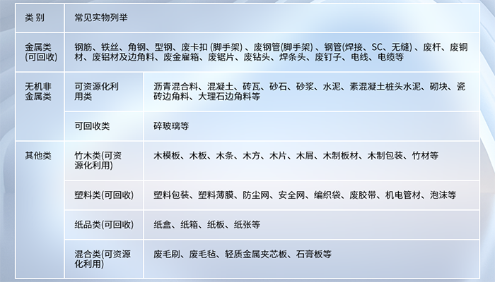 建築垃圾,是(shì)指建設單位(wèi)、施工單位新建、改建、擴建和拆除各類建築(zhù)物、構築物、管網、道橋等,以及居民裝飾裝修(xiū)房屋過程中產生的棄土、棄料和其他固體廢物。建築垃圾應當按照工程渣土、工(gōng)程泥漿、工程垃圾、拆除垃圾、裝修(xiū)垃圾進行分類收集(jí)、分類運輸、分類利用(yòng)、分(fèn)類處置,並應(yīng)當堅(jiān)持以末端處理為(wéi)導向,對建築垃圾進行細化分類處理,進一步推動建築垃圾資源化利用。