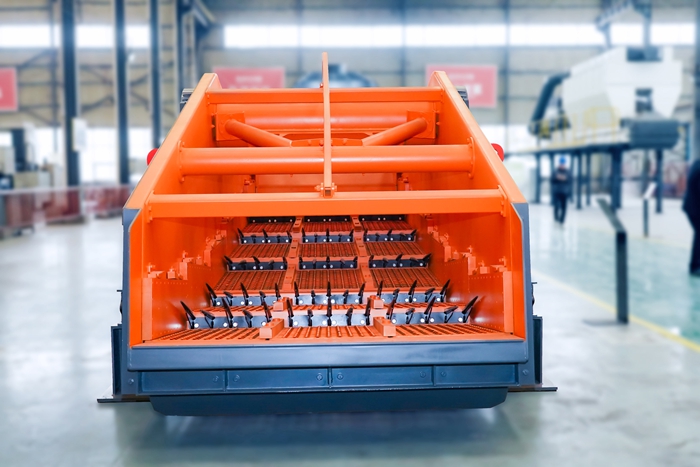 階(jiē)梯棒條篩針對裝修裝潢垃圾(jī)的原(yuán)料特性與特征,階梯篩複雜的結構包含一個上(shàng)層的以階梯狀分布的指型棒,和(hé)一個下層的方形或菱形網格篩板,可以有效的篩分原料(liào)中大小不同(tóng)的物料,達到原(yuán)料分級的目的。