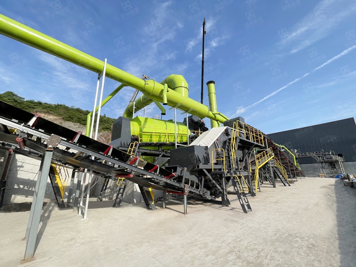 優勢4:通過調整風機的風速集風量,使物料在較佳的流速和流量下(xià)有效分(fèn)離,使該分選係統(tǒng)達到較佳(jiā)的處理效果,分選出的輕(qīng)物料進入物料分(fèn)離器,廢氣和輕物料得到分離,廢(fèi)氣粉塵進(jìn)入除塵係統處理後排出,另一部分再與(yǔ)新鮮空氣混(hún)合後重(chóng)新進入鼓風係統。