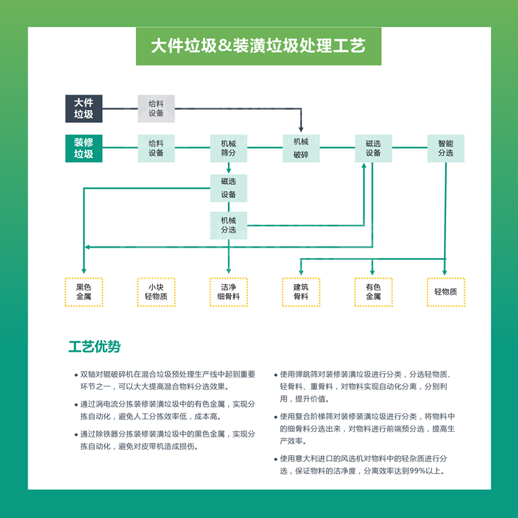 裝修裝潢大件垃圾(jī)是很多環保人士探(tàn)討的(de)話題,究竟裝修裝潢大件垃圾是怎麽(me)的處理工藝?這些工藝具(jù)有哪些優(yōu)勢?鄭州鼎(dǐng)盛工(gōng)程部今天為大(dà)家揭(jiē)秘。