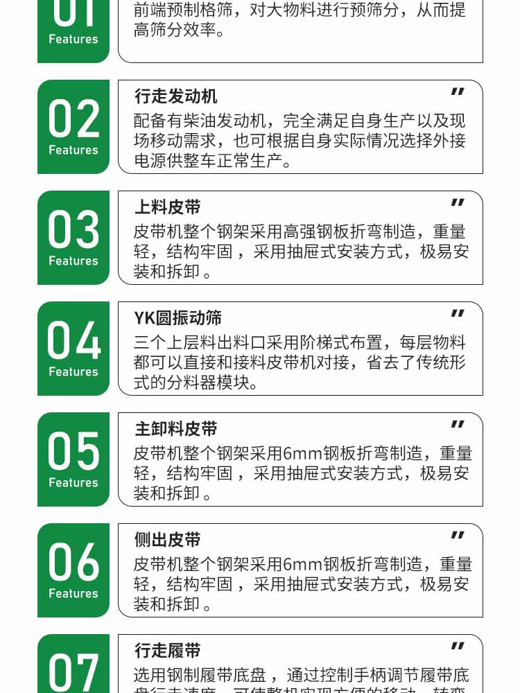 設(shè)備配置:WLF輪胎式破碎篩分聯合一體車