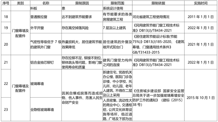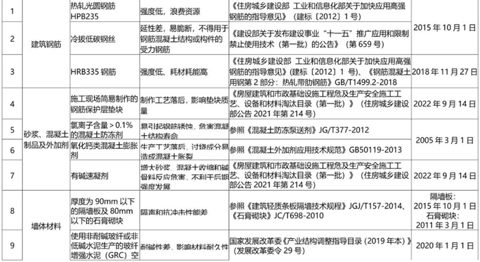 列入限製或禁止使用的材料設備,是社會關注(zhù)度較高或工(gōng)程使用中問題出現較多(duō),對工程質量、安全、節能、環保等影(yǐng)響較大(dà)的產品,各工(gōng)程建設單位不得(dé)違(wéi)規使用。