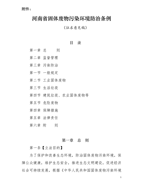 為深入(rù)貫徹黨中(zhōng)央、國務院決策部署,落實《中華人民共和國固體(tǐ)廢物汙染環境防治法》,全麵提(tí)升我省固體廢物汙染環境防治及資(zī)源化利(lì)用水平,有效防控(kòng)固體廢物環境汙染風險,我省擬對《河南省固體(tǐ)廢物汙染環境(jìng)防治條(tiáo)例(lì)》進行修訂,按照工作安排(pái),我廳起草了《河南省固體廢物汙染環境(jìng)防治條例(征求意見稿)》,現征求社會各界意見建議。