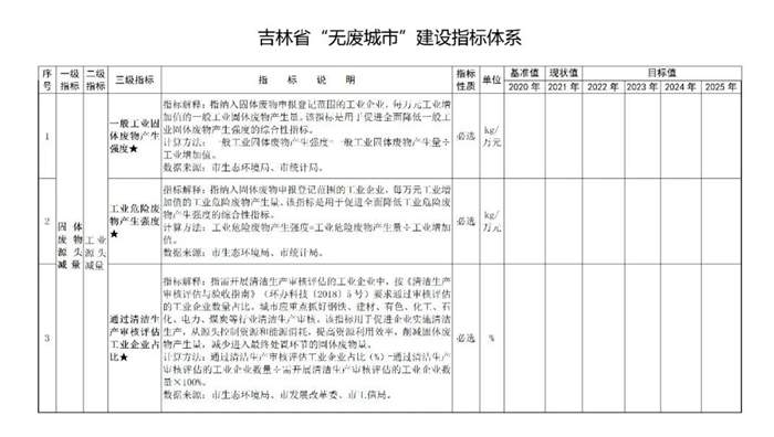 附件:吉林省“無廢城市”建設指標體(tǐ)係