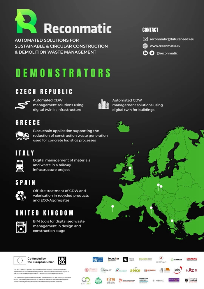 RECONMATIC項目旨在為歐盟建築項目的整個生命周期開(kāi)發創新的廢棄物管理解決方案和工具,因(yīn)此加深對CDW概念、定義和數量類型的理解,區分不同的CDW處理操作和相關輸出量,以及(jí)改進完善(shàn)CDW報告機製,這些內容都對我們未來的工(gōng)作至關(guān)重要。