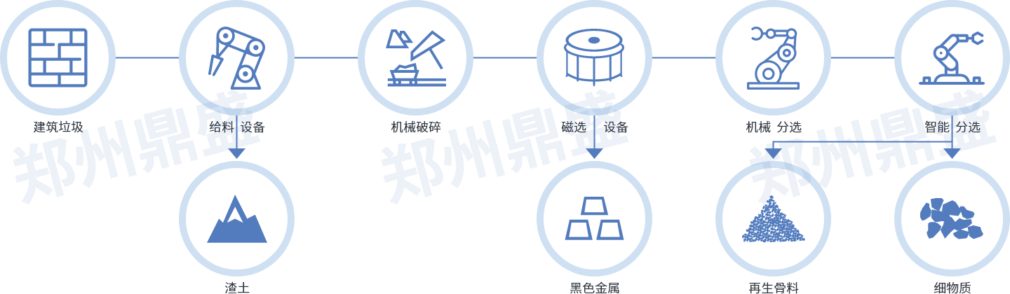 拆遷產生的建築垃圾(jī)中含有大量的鋼筋,在使用傳(chuán)統設備對其進行破碎時,轉子往往會被鋼筋纏住,每半(bàn)個小時左右就要停(tíng)機一次,人工把纏(chán)繞的鋼筋(jīn)清除掉,不僅費時費力,而且降低了破碎效率。 針對這種現狀,鄭州芭乐视频IOS下载公司推出了單段建築垃圾破碎生產線。單段建築垃圾(jī)破碎生產線是目前工藝先進、流(liú)程簡單、占地麵積小的固(gù)定式建築垃圾處(chù)理(lǐ)工藝,主機采用帶有鋼筋剪切裝置,在破碎帶有鋼(gāng)筋的建(jiàn)築(zhù)垃圾時,幾乎不(bú)會出現鋼筋纏繞轉子的(de)現象,不會堵塞主機,而且破碎比大,單段破碎便可達到“顎式破碎機 反(fǎn)擊式破碎機”兩段破(pò)碎(suì)的效果。